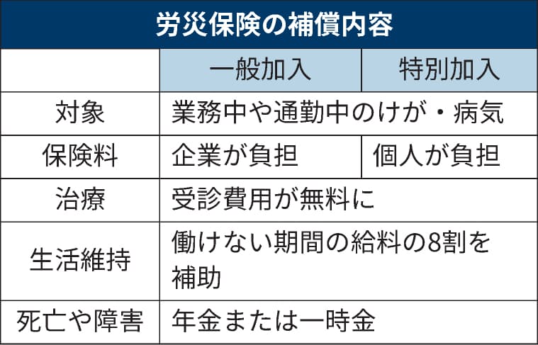 企業に雇用されている労働者の労災保険料は、企業が全額負担し補償があるが、企業に属さずフリーランスとして 働く人には補償がない。